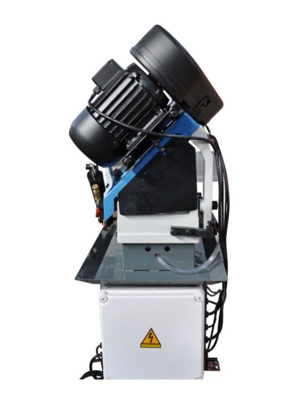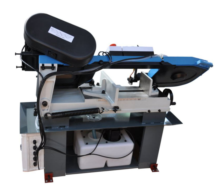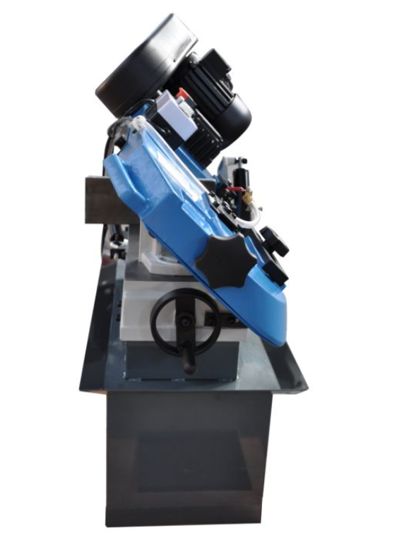 Способность резать под углами представляет собой незаменимую функцию станка, данная модель оборудована поворотными давлениями. Благодаря простоте конструкции имеет более доступную цену по сравнению с пилами с поворотной режущей головой. Используется на производствах, где производится рез как правило под прямым углом и иногда под другими углами.