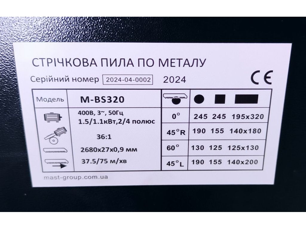 Ленточная пила по металлу MAST Metalltechnik M-BS320 (400V)