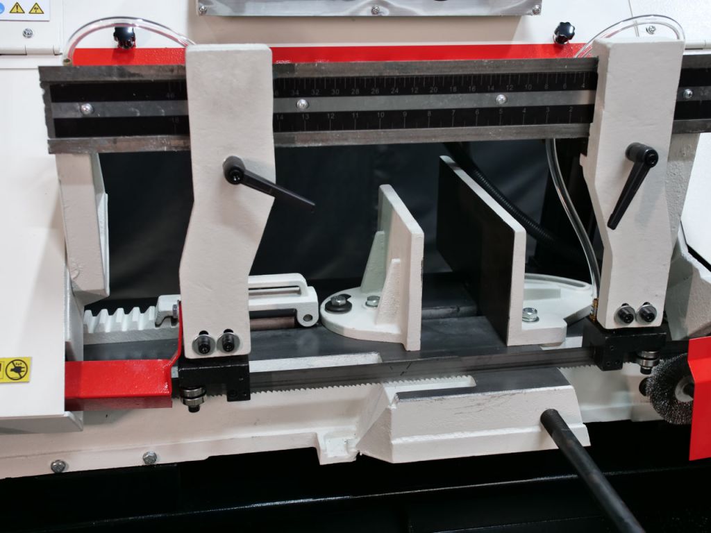 - Прочная конструкция: Станок весом 300 кг гарантирует устойчивость при работе, снижает вибрацию и повышает точность распила.