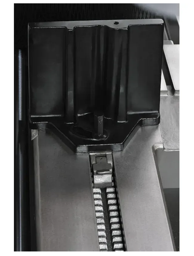 - Гибкие направляющие — Подвижная и неподвижная направляющие минимизируют увод полотна и обеспечивают строго перпендикулярный рез.