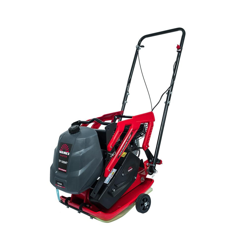 Складывающаяся ручка и узел для подъема в виде рамы над двигателем позволяет без проблем транспортировать устройство даже в легковом автомобиле. Также для удобства транспортировки данная вибрационная плита оборудована транспортировочными колесами. В комплект входит свечной ключ и полиуретановый коврик. Вибрационная плита Vitals Master TP 100WT выполнена из качественных частей и деталей, на которые распространяется гарантия 36 месяцев и действует по всей территории Украины.
