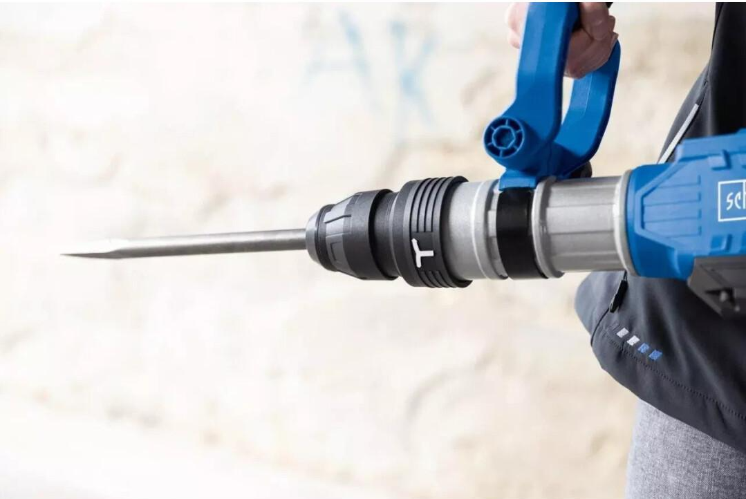 Отбойный молоток Scheppach AB2000 с энергией удара 60 джоулов и мощным двигателем 1700 Вт идеально подходит для сложных демонтажных работ или прорывов в бетоне, камне или кирпичной кладке. Патрон SDS-Max позволяет легко менять сверла без инструментов. Регулируемая частота ударов от 200 до 2100 ударов в минуту позволяет настроить молоток на любой материал. Отбойный молоток поставляется в комплекте с острыми и плоскими зубилами, шестигранным ключом, смазкой и запасными угольными щетками, все это размещено в колесике.