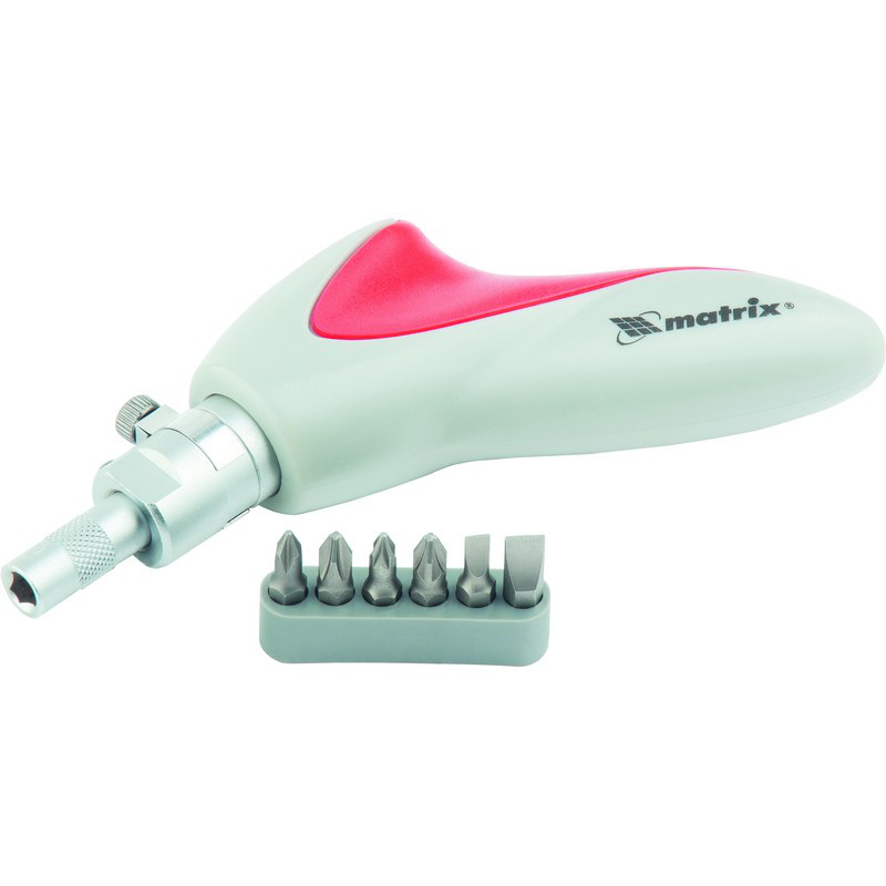 MTX Викрутка реверсивна, поворотна головка, набір біт, CrV, 6 шт.MTX