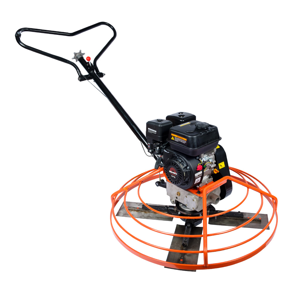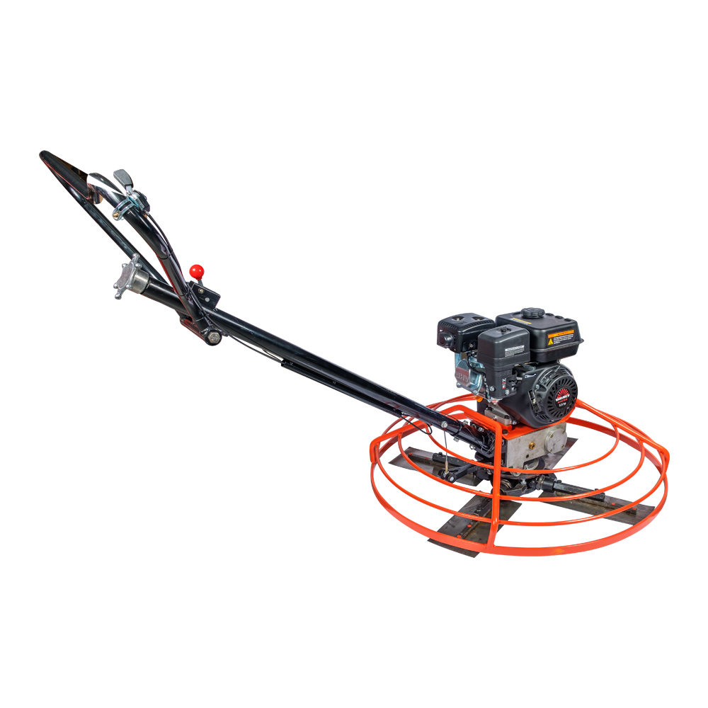 Для приведения в действие лопастей, используется надежный и экономичный в работе двигатель «Vitals» мощностью 5,5 л.с. Запуск двигателя осуществляется ручным стартером. Крутящий момент передается на диск с помощью простого и надежного редуктора. Сбалансированное расположение основных узлов обеспечивает наилучшую центровку затирочной машины, что в свою очередь гарантирует равномерную и качественную обработку поверхности.