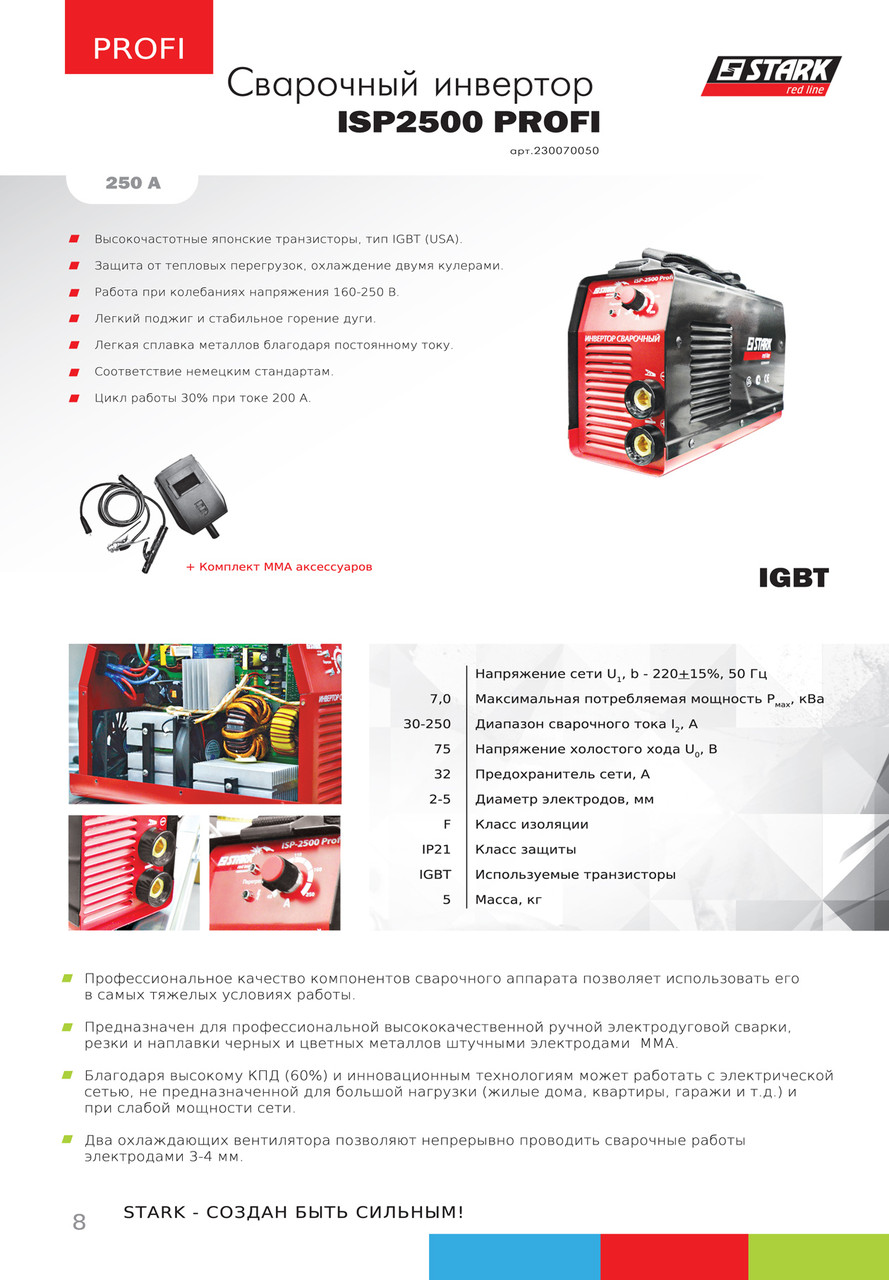 Описание Сварочный инвертор STARK ISP-2500 PROFI