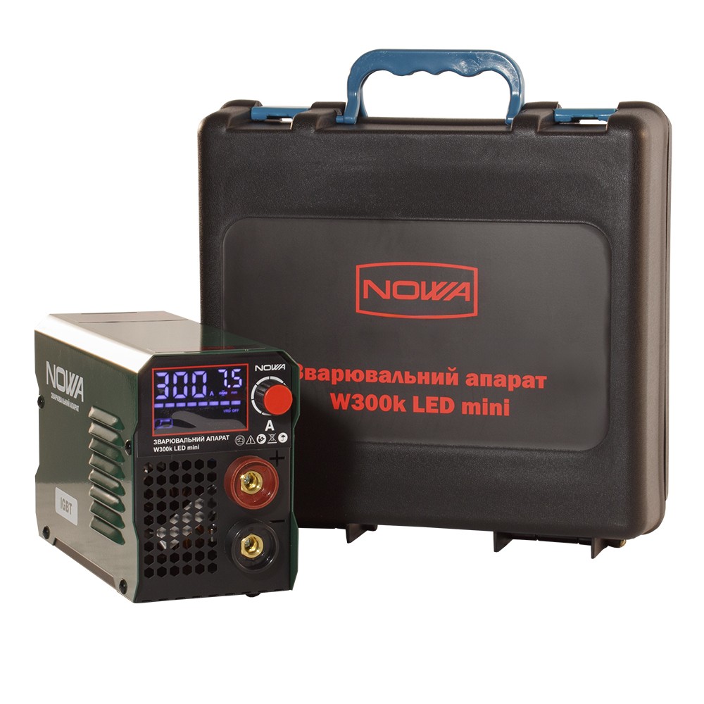 Сварочный аппарат ТМ "NOWA" модели "W300k LED mini" - это инверторный сварочный аппарат, предназначенный для ручной дуговой сварки стали и цветных металлов с помощью электрода или вольфрамового электрода с использованием инертных газов (аргон, гелий). Он поддерживает два режима: с использованием вольфрамового электрода