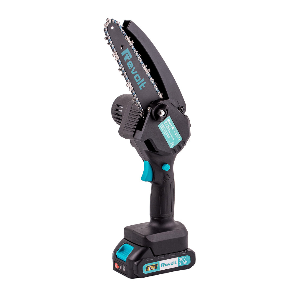 Акумуляторна ланцюгова пилка Revolt BCS 20/6 - це портативний інструмент для обрізання дерев та дощок. Пила має легку вагу та ергономічну форму, що забезпечує комфортну роботу. Гнучкий захисний кожух забезпечує додаткову безпеку. Підходить для використання у важкодоступних місцях під час роботи в саду або домашньому господарстві. Ідеальний помічник для точного обрізання дерев, чагарників, а також може виконати складніші завдання, які виконують бензопилами.