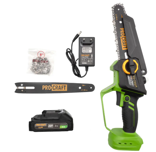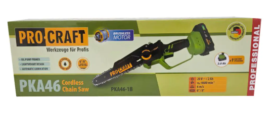Акумуляторна міні-пилка Procraft PKA46 - це сучасний інструмент для садових та господарських робіт. Вона поєднує компактні розміри, невелику вагу (1,8 кг з усією комплектацією) та високу продуктивність. Пила ідеально підходить для обрізання гілок, розпилу дров та дощок, а також для дрібних будівельних та ремонтних завдань.