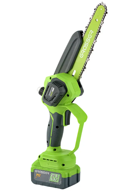 Акумуляторна ланцюгова пилка Grasser GCS 802 - це портативний інструмент для обрізання дерев та дощок, відноситься до серії М1. Пила має легку вагу та ергономічну форму, що забезпечує комфортну роботу. Гнучкий захисний кожух забезпечує додаткову безпеку. Підходить для використання у важкодоступних місцях під час роботи в саду або домашньому господарстві. Ідеальний помічник для точного обрізання дерев, чагарників, а також може виконати складніші завдання, які виконують бензопилами.