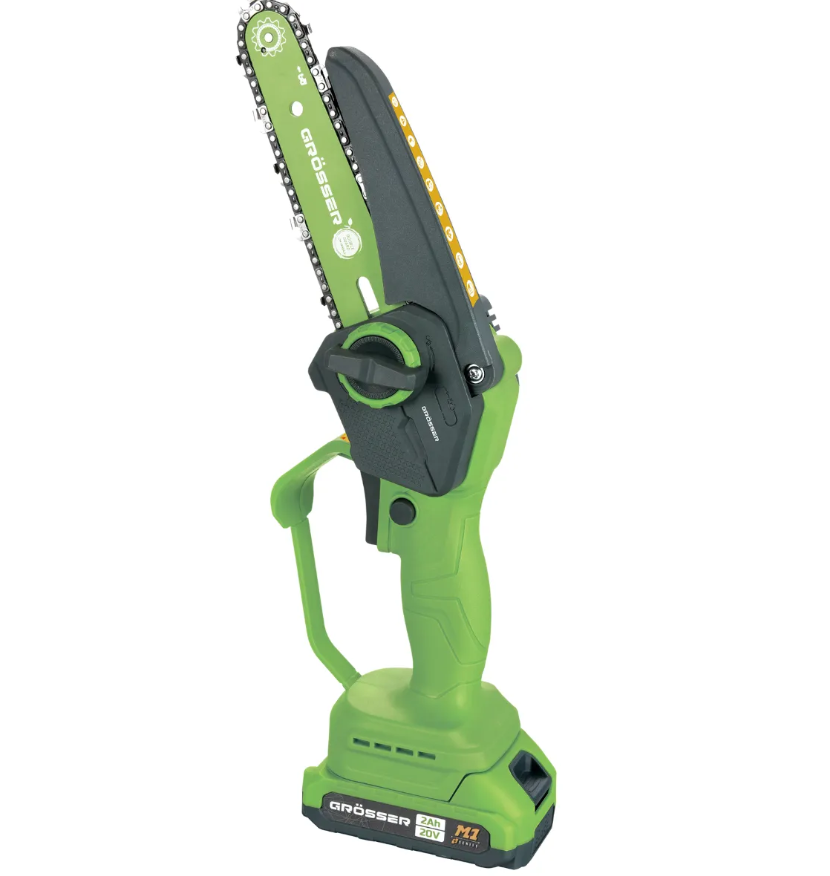 Акумуляторна ланцюгова пилка Grosser GCS 601 – це компактний та ефективний інструмент, що ідеально підходить для виконання легких та середніх робіт з обробки деревини. Завдяки своїй довжині шини 6" (152 мм), ця пила дозволяє з легкістю виробляти точні різи на гілках, невеликих стовбурах та інших матеріалах.