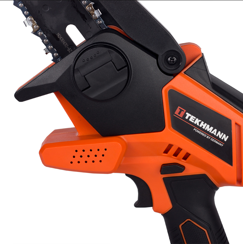 Мініпил акумуляторний Tekhmann TCMC-10/i20 призначений для роботи на присадибних ділянках, в садах і парках, для механізованого пиляння деревини, обрізки сучків, заготівлі дров малого розміру та інших господарських цілей побутових умов. Ця модель поєднує сучасні конструктивні рішення для збільшення ресурсу роботи, продуктивності та надійності інструменту, а також для його безпечного використання.