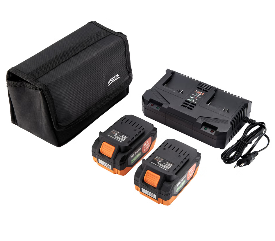У комплектацію SBC4016BS-E2W входять два акумулятори ємністю 4 А·год та зарядний пристрій з подвійним гніздом для одночасної зарядки, що дозволяє працювати довше без перерв.