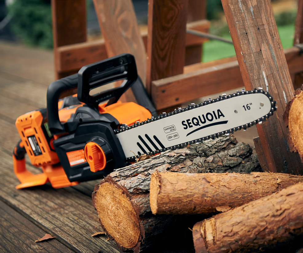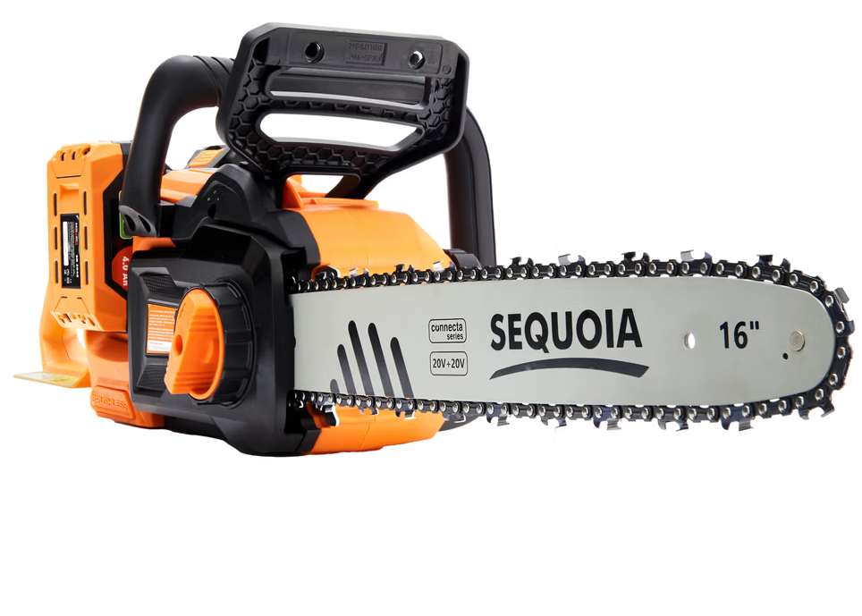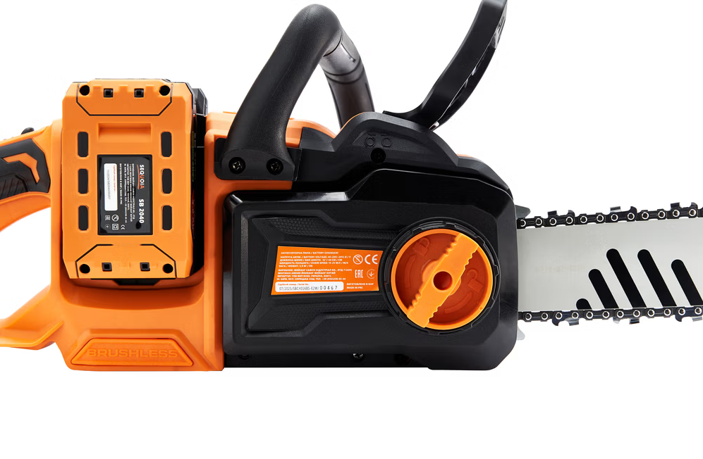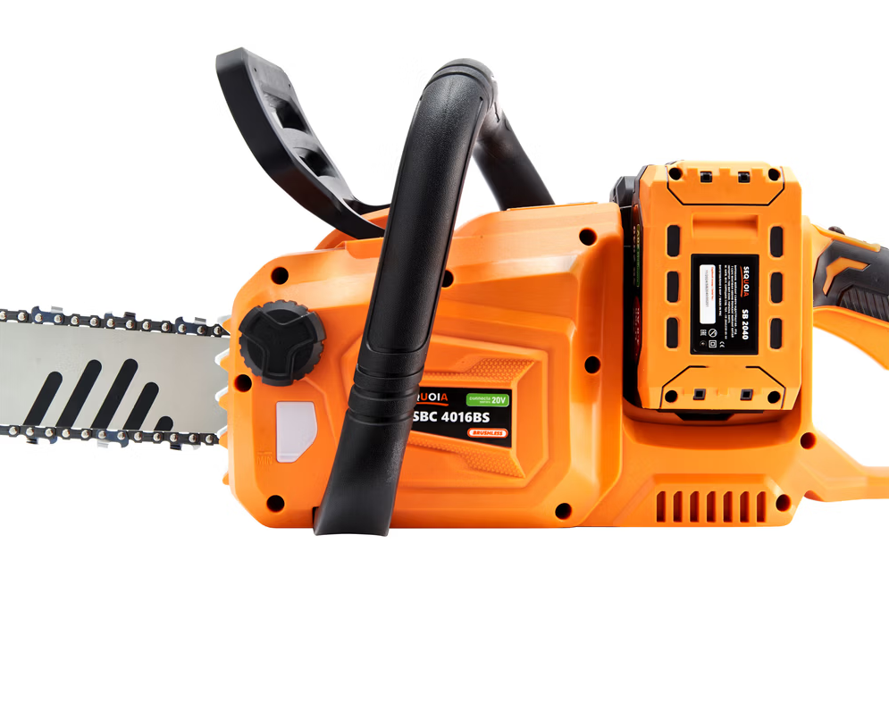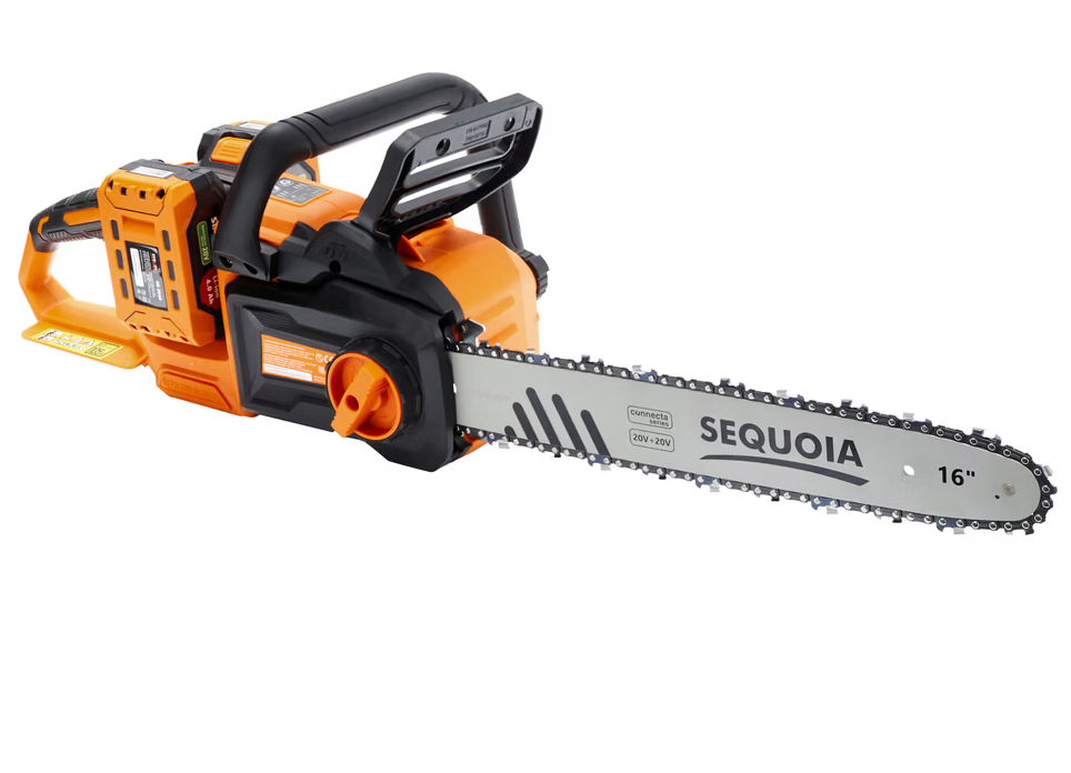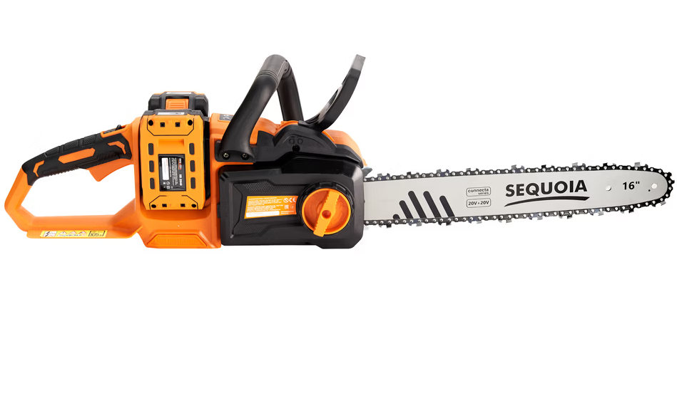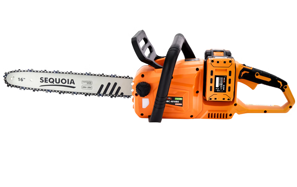 Акумуляторна ланцюгова пилка SEQUOIA SBC4016BS-E2W лінійки Connecta Series 20V оснащена потужним безщітковим двигуном і шиною довжиною 40 см (16?). Інструмент працює від двох акумуляторів 20В (у сумі 40В), розвиває швидкість ланцюга до 25 м/с у режимі Turbo і легко справляється навіть із твердими породами деревини.