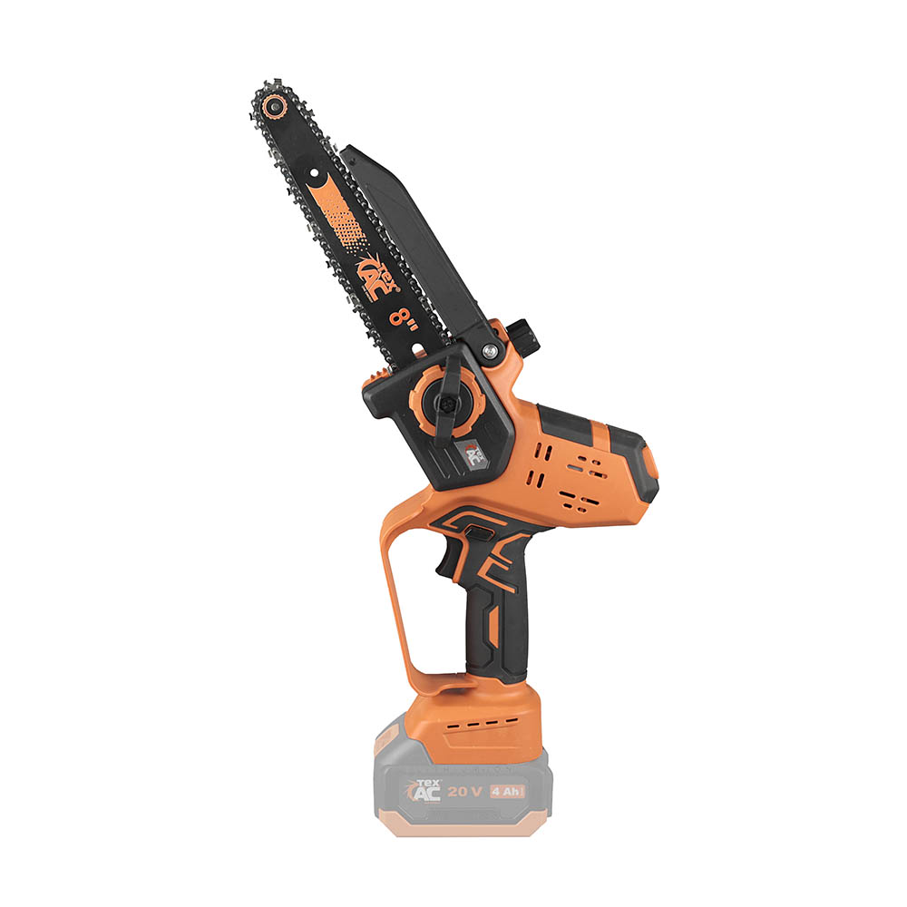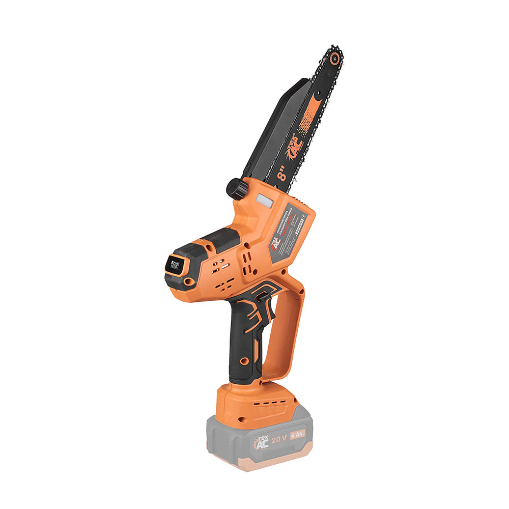 Ланцюгова акумуляторна пилка Tex.AC TAOE-S8OBL - це компактний і потужний інструмент, що ідеально підходить для виконання різних завдань на садовій ділянці або в будівництві. Живлення від акумулятора з напругою 20 В забезпечує високу мобільність та зручність у роботі, а безщітковий двигун гарантує надійність, довговічність та мінімальні втрати енергії.