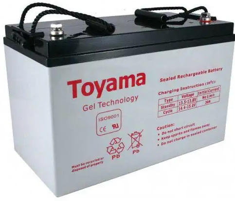 Акумуляторна батарея Toyama NPG 80A-12V, це необслуговувана, герметична, гелева акумуляторна батарея великий ємності. Завдяки своїм унікальним властивостям акумулятор TOYAMA можна використовувати в "жорстких" умовах допускаючи глибокі розряди (сонячна енергетика, електроприводи, іверторні системи та ін.). Корпус зроблений з термостійкої та удароміцної пластмаси. Місткість батареї становить 80 А. Напрацювання циклів заряду становить приблизно 400-1200 (залежно від правильності використання та глибини розряду).