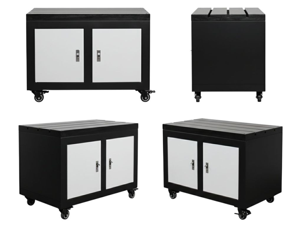 Робоча поверхня столу має розміри 900×600 мм, що забезпечує достатньо місця для розміщення верстата та заготовок різних габаритів. Товщина стільниці 50 мм гарантує високу жорсткість конструкції, мінімізує вібрації та сприяє точній обробці деталей. Завдяки потужній конструкції стіл здатний витримувати значні навантаження без втрати стійкості.