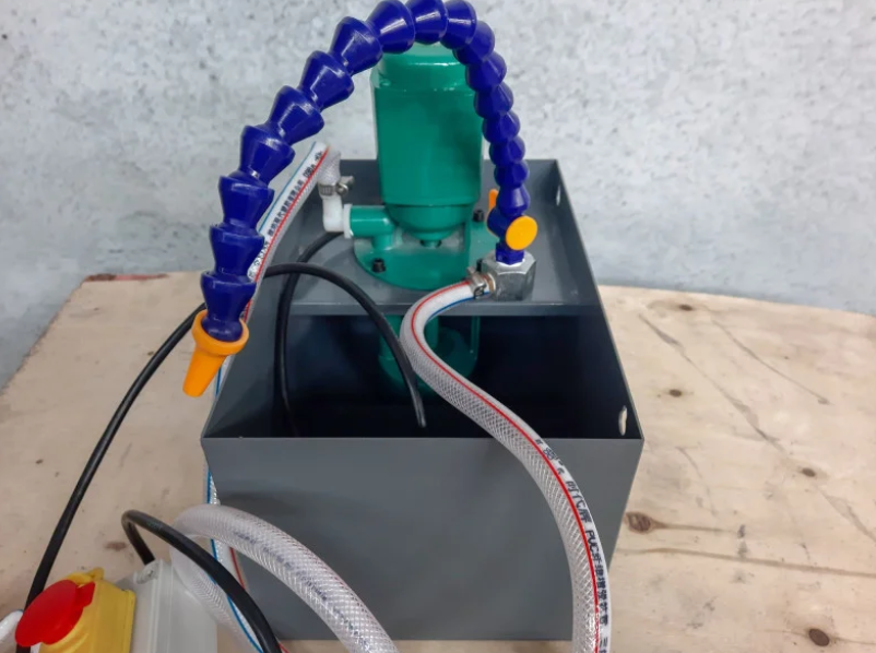Система подачі СОЖ FDB Maschinen CB13L/230V Опис Системи подачі СОЖ CB13L/230V Універсальний пристрій для використання з усіма типами металообробних верстатів, призначена для подачі мастильно-охолоджуючих рідин в зону різання, серлення або пиляння. Функціональні особливості FDB Maschinen CB13L: Повний комплект - насос, ємність для СОЖ, гнучкі шланги, форсунка, що подає. Об'єм СОЖ 13 літрів. Магнітне кріплення подачі.