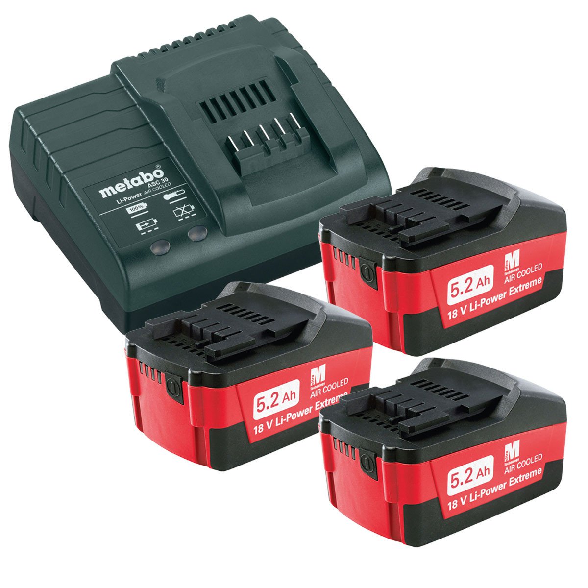 Базовий комплект Metabo 3 акумулятора x 5,2 Аг + зарядний пристрій ASC 30 – 36 В