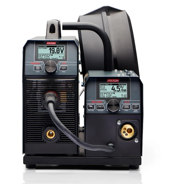 Інверторний цифровий напівавтомат PATON ProMIG-270-15-2 – це апарат для промислового використання, призначений для ручного дугового зварювання (РДС «MMA»), аргонодугового зварювання (АРГ «TIG») та напівавтоматичного зварювання (ПА «MIG/MAG») і на постійному струмі. ProMIG-270-15-2 реалізований повністю цифровий спосіб керування, за рахунок чого забезпечуються його багатофункціональність і широкі можливості в точному налаштуванні режимів зварювання. до 1,2 мм Завдяки двокорпусному виконанню, джерело струму можна з легкістю відокремити від блоку подачі дроту, що значно підвищує мобільність та зручність роботи в режимах MMA та TIG.