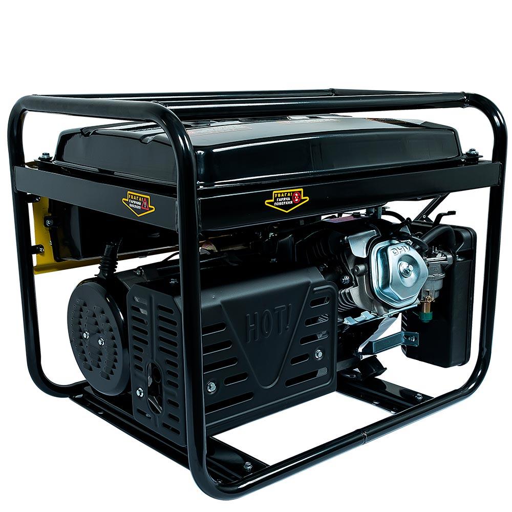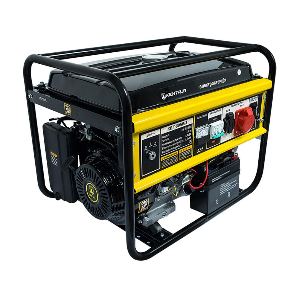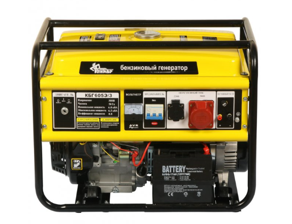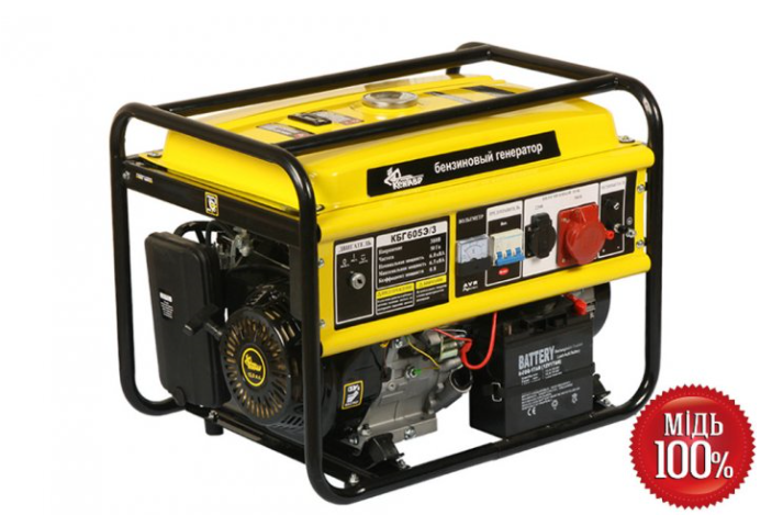 Бензиновий генератор КЕНТАВР КБГ605Е/3 Опис генератора бензинового Кентавр КБГ-605Е/3:Бензинова мініелектростанція Кентавр КБГ-605Е/3 з електричним стартером – відмінний вибір для забезпечення електроенергією будинку та прилеглої до нього території, дачі, а також невеликого. Цей силовий агрегат можна використовувати як основне або аварійне джерело електроживлення в тій місцевості, де бувають перебої з електропостачанням або відсутня стаціонарна електромережа як така. Між нулем і однією фазою даної моделі генератора можна знімати напругу 220 В частотою 50 Гц, а між двома фазами – 380 В частотою 50 Гц. а рівень шуму на максимальній потужності становить 78 дБ. Мініелектростанція Кентавр КБГ-605Е/3 чудово справляється з усіма своїми функціями в умовах короткочасної або тривалої експлуатації. Дана модель оснащена паливним баком, ємність якого становить 25 літрів, що дозволяє безперервно виробляти електричний струм протягом 9 годин при повному баку. Мінімальна витрата палива становить 375 гр/кВт*ч. Міні електростанція Кентавр КБГ-605Е/3 забезпечена автоматичним регулятором напруги, який забезпечує стабільну вихідну напругу в усьому діапазоні допустимих навантажень. Дану модель, максимальна потужність змінного струму якої становить 6,5 кВА, можна використовувати для електроживлення складного електронного обладнання, засобів зв'язку, а також спеціальних та побутових споживачів (комп'ютерів, телевізорів, казанів). Щоб уникнути пошкодження двигуна при недостатній кількості масла в картері, передбачена аварійна система, яка при низькому рівні масла зупинить двигун, запобігши тим самим його пошкодженню. Особливості моделі Кентавр КБГ-605Е/3: Номінальна напруга, В 380 Номінальна частота змінного току, Гц 50 Номінальна потужність змінного току, кВт 6,0 Максимальна потужність змінного току, кВт 6,5 Коефіцієнт потужності (cos Φ) 0,8 Вихід постійного струму, 12 В / 8,3 А Є Автоматичний регулятор напруги (AVR) Є Тип двигуна 4-тактний одноциліндровий Тип охолодження Повітряне охолодження Потужність двигуна, к.с. 15,0 Робочий об'єм двигуна, куб. см 420 Система запалювання Транзисторне магнетто Система запуску двигуна Ручний і електричний стартер Датчик низького рівня масла в двигуні Є Обсяг масла в картері двигуна, л 1,1 Топливо Бензин Аі-92 Ємність топливного бака, л 25,0 витрата палива, гр/кВт * рік 375 Рівень шуму, дБ 78 Габарити упаковки, мм 690х530х555 Маса нетто/брутто, кг 80,0/83,0 матеріал ротора та статора генератора – 100% мідь; 4-тактний одноциліндровий двигун; щітковий синхронний генератор; стабільність роботи у всьому діапазоні завантажень; трифазна система електропостачання; ручний та електричний стартер; автоматичний регулятор вихідної напруги (AVR); тривалий час безперервної роботи; вихід постійного струму 12; датчик низького рівня масла у картері двигуна. Технічні характеристики Номінальна напруга, 380 Номінальна частота змінного струму, Гц 50 Номінальна потужність змінного струму, кВА 6,0 Максимальна потужність змінного струму, кВА 6,5 Коефіцієнт потужності (cos Φ)0,8 Вихід постійного струму, 12 В/8, 3 А+ Автоматичний регулятор напруги (AVR)+ Тип двигуна 4-тактний одноциліндровий Тип охолодження повітряне охолодження Потужність двигуна, к.с. 15,0 Система запалювання транзисторне магнетто Робочий об'єм двигуна, куб. см 420 Система запуску двигуна ручний та електричний стартер Паливо бен