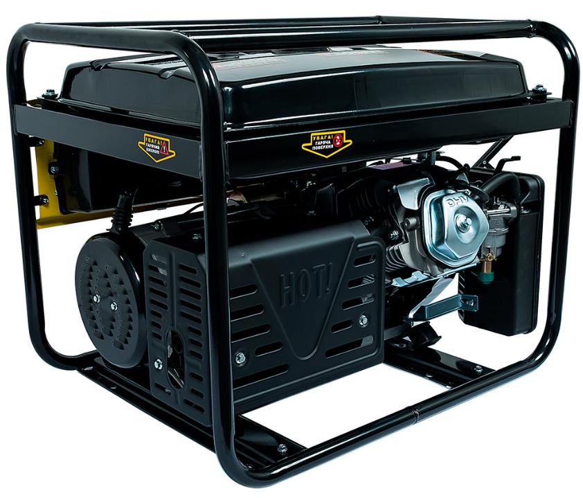 Генератор і двигун встановлені на міцній металевій рамі через демпферні опори, завдяки чому під час роботи агрегат має стійке положення, а рівень шуму на максимальній потужності становить 78 дБ.