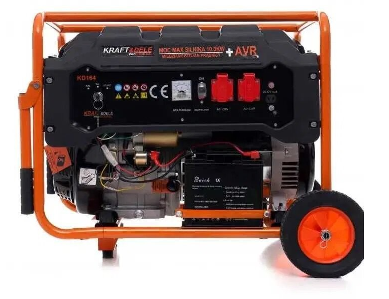 Переносний однофазний електрогенератор з позначенням KD164 фірми Kraft&Dele призначений для вироблення змінного струму напругою 220В-230В з використанням японського 4-тактного двигуна OHV потужністю 15КМ/10,3КВт та номінальною потужністю генератора 5000Вт. .