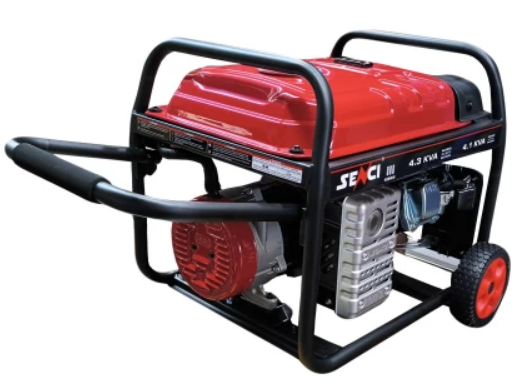 Senci SC7000E - продуктивний бензиновий генератор з номінальною потужністю 4.1 кВт, при роботі генерує напругу 220 В, яку можна використовувати для підключення електроінструментів або обладнання. На корпусі є одна розетка на 220 В. Вбудований бак на 15 л дозволяє працювати до 7 годин при навантаженні 100%. У цій модифікації генератора встановлений електростартер.