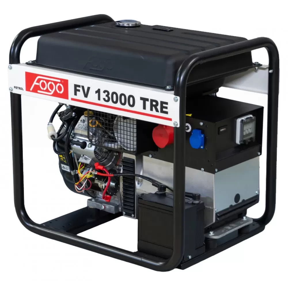 Опис Генератор бензиновий FOGO FV 13000 TRE (FV 13000 TRE) Трифазний 4-тактний бензиновий генератор з двигуном Vanguard 3564. Запуск зі стартера або вручну. Номінальна потужність генератора: 9,04 кВт (3 фази) та 6,5 кВт (1 фаза). Номінальна сила струму 16,4 А (3 фази) та 28,3 А (1 фаза). У генератор вбудована система стабілізації напруги (AVR) та термореле, що відключає двигун при досягненні критичної позначки робочої температури. Додатково реалізовано технологію захисту двигуна від роботи без масла з його аварійним відключенням. Генератор відрізняється високою економічністю та підвищеним ККД. Витрата палива при 75% навантаженні – 4,5 л/год. Укомплектований високоякісним альтернатором від виробника Sincro (Італія) із класом захисту IP 23. Призначений для відновлення подачі електрики у разі збоїв роботи електромережі або відсутності інших джерел живлення, коли стаціонарна мережа недоступна або пошкоджена. Особливості автоматична зупинка двигуна при низькому рівні масла цифрове регулювання напруги AVR +/- 1,5% на кожну фазу цифрова система AVR, що гарантує роботу без перевантажень і не допускає появи стрибків напруги THD ≤ 5% захист від перевантаження термореле датчик тиску масла : 1ф ~ 16A 230V Schuko і 3ф ~ 32A 400V IP44 клас захисту генератора IP 23 клас ізоляції генератора H пусковий струм генератора 300% посилений профіль рами 38 мм глушник ний набір сервісний пакет (повітряний фільтр, свічка запалювання, моторне масло) Характеристики Генератор бензиновий FOGO FV 13000 TRE (FV 13000 TRE) Потужність номінальна 1ф, кВт6.5 Потужність максимальна 1ф, кВт7.0 Потужність номінальна 3ф, кВт9. кВт10.0 Напруга, В220 Кількість фаз1 / 3 Частота, Гц50 Тип альтернаторасинхронний Тип двигуна4-тактний, 2-циліндровий Модель двигунаVanguard 3564 Потужність двигуна, к.с.18 Тип запуску/електростартер Витрата палива, л/год4.5 Об'єм палива л45.0 Об'єм масла, л1.7 Час безперервної роботи, ч10 Тип охолодження повітряне AVR (авторегулятор напруги) да Ступінь захисту IP23 Рівень шуму, дБ96 Розміри (Д * Ш * В), см79х58х76.5 Вага, кг128.0 Комплектація Особливості