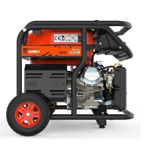Генератор бензиновий GENERGY ANETO 5,5 кВт – однофазна (230 В) електростанція для забезпечення електроенергією потужних побутових електроприладів, будівельного інструменту та ін. Модель може використовуватися як основне або резервне джерело живлення. Максимальна потужність генератора – 5,5 квт. Номінальна потужність (максимально допустима потужність для тривалих навантажень) – 5 кВт.