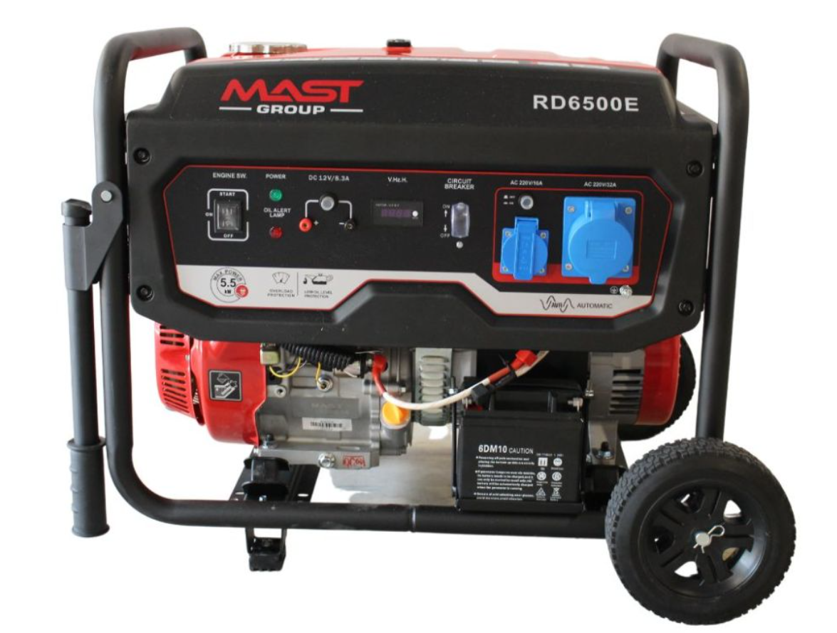 Бензиновий генератор MAST GROUP RD6500E - потужний генератор для автономної та аварійної подачі електроенергії для будівельних майданчиків, саду. Підходить для постійного та тривалого користування. Забезпечить електрикою всі прилади будинку (в тому числі енергоємні), а на будівельному майданчику - всі інструменти. Використовується для енергонезалежності заміських будинків, офісів, торгових точок в аварійних ситуаціях на лініях електропередачі, а також як мобільне джерело електрики для комунальних і дорожніх служб.