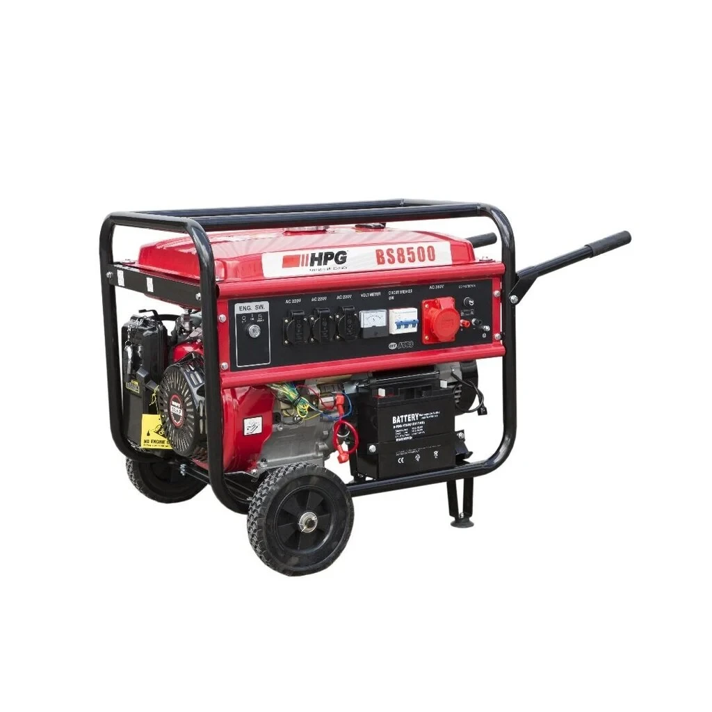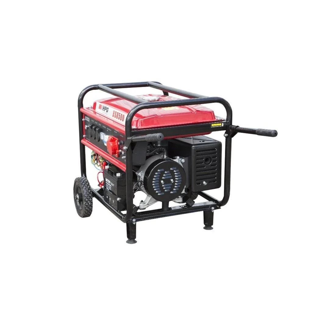 Генератор бензиновий Генератор HPG BS8500, 7000Вт, АРН, з колесами, з ручками, 3 фази, електростартер. Ідентифікатор елемента: 18062 Категорія: Електрогенератори Кількість упаковок продукту: 1 шт. Розмір упаковки та вага (1): 0,71 х 0,53 х 0,55 м, 85 кг Тип електрогенератора: Бензин Влада: 7000 Вт Товарний знак: HPG Двигун: Не вказано Напруга: 220 В Ємність паливного бака: 25 л : Електричний Маса: 81 кг Вид: ТНВД, бензинові електрогенератори Всі товари цього бренду: Всі продукти HPG Опис товару: Генератор HPG BS8500, 7000Вт, АРН, з колесами, ручками, 3-х фазний, електростартер. Генератор HPG BS8500, 7000Вт, AVR, з колесами, з ручками, 3 фази, електростартер. Дистанційне керування генератором СТАРТ-СТОП у комплекті. Технічні дані (двигун) Об'єм двигуна: 439 см3 Максимальна вихідна потужність: 16,0 / 3600 к.с./об/хв Система упорскування: TCI Запуск: ручний запуск та електричний запуск Місткість паливного бака: 25 літрів Час роботи з повним паливним баком : 8 тнди Ємність масляного бака: 1,1 літра AVR Технічні дані (генератор) Номінальна напруга: 220 В та 380 В Номінальна частота: 50 Гц Номінальна потужність: 6500 Вт Максимальна потужність: 7000 Вт Вага нетто: 81 кг Гарантія 3. Розмір упаковки: 710 х 530 х 550 мм. Зображення продуктів носять ілюстративний та ілюстративний характер. Посилання на відео в описі товару носять ознайомлювальний характер, тому інформація, що міститься в них, може відрізнятися від самого товару. Кольори, примітки, параметри, габарити, розміри, особливості та/або інші характеристики оригінальних товарів можуть відрізнятися від їх реального вигляду, тому, будь ласка, звертайтесь до характеристик товару в описі товару. Якщо у вас виникнуть питання, ми завжди чекаємо на ваш дзвінок по телефону