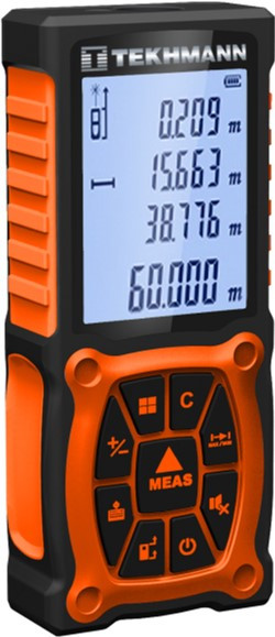 Представляємо Вашій увазі лазерний вимірювач відстані Tekhmann TDM-100. Пристрій призначений для проведення швидких та точних вимірів висоти, довжини, ширини, а також обчислення площі приміщення. Максимальна дальність виміру - 100 м. Цих можливостей цілком достатньо як для роботи всередині приміщення, так і зовні. Корпус приладу виконаний з міцного, нековзного пластику. Виробник оснастив інструмент великим РК-дисплеєм, на який виводяться всі необхідні дані. Для тривалої роботи передбачено функцію пам'яті (кількість вимірювань на одному комплекті батарей – 5000).