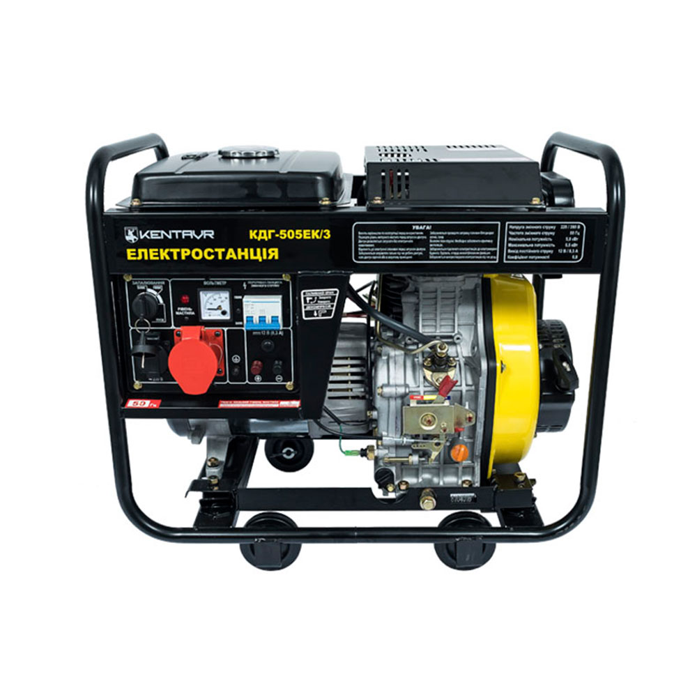 Дизельна мініелектростанція Кентавр КДГ-505ЕК/3 з електричним стартером - відмінний вибір для забезпечення електроенергією будинку та прилеглої до нього ділянки, заміського будиночка або дачі, а також невеликого складського приміщення. Дану модель можна використовувати як основне, так і аварійне джерело електроживлення в тій місцевості, де відсутня стаціонарна мережа, або трапляються перебої з постачанням електроенергії.