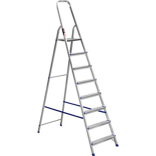 Драбина Stark SALW508 Stark SALW508 – алюмінієва драбинка заввишки 166 см для побутового та професійного використання з максимальною робочою висотою до 3,7 м. Драбина виготовлена з міцного алюмінієвого профілю 40х20 мм завтовшки 1,2 мм, що забезпечує безпеку ваги. Stark SALW508 складається з 8 алюмінієвих сходів, які зафіксовані заклепками. Ребриста поверхня сходинки запобігає ковзанню ноги для ще більшої безпеки. Верхній майданчик виготовлений із міцної сталі, він надійно фіксується в розкладеному стані. Зручно розміститися на драбини допомагає опора-рукоятка, за яку можна триматися, піднімаючись сходами. На ніжках передбачені пластикові накладки, які запобігають пошкодженню поверхні. Для надійної фіксації на ніжках накладки закріплені заклепками. Характеристики драбини Stark SALW508: Кількість сходинок – 8 шт.; Висота від підлоги до платформи – 166 см; Висота у складеному стані разом з опорою-рукояткою – 244см; Робоча висота – 370см; Ширина сходинки – 54 см. Stark SALW508 – компактні алюмінієва драбини дозволять швидко прибрати в будинку, помити вікна, дістати до верхньої полиці, виконати ремонтні роботи, зібрати врожай або обрізати дерева в саду та ін.