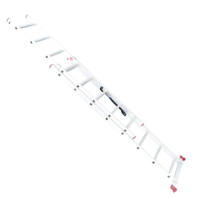 виготовлені з високоякісного екструдованого алюмінієвого профілю тому вона досить легка – 7,9 кг і максимально надійна – витримує навантаження до 150 кг. Кожна з двох секцій оснащена 8 щаблями шириною 280 мм. Висота сходів у розкладеному вигляді – 3690 мм, у складеному – 2286 мм. Оснащена протиковзкими двокомпонентними опорними заглушками, що забезпечує надійне зчеплення з опорною поверхнею і перешкоджає небажаному ковзанню сходів. Рифлені щаблі запобігають ковзанню взуття. Конструкція дозволяє використовувати її як драбини і як приставна сходи. Відповідає європейському стандарту EN131.