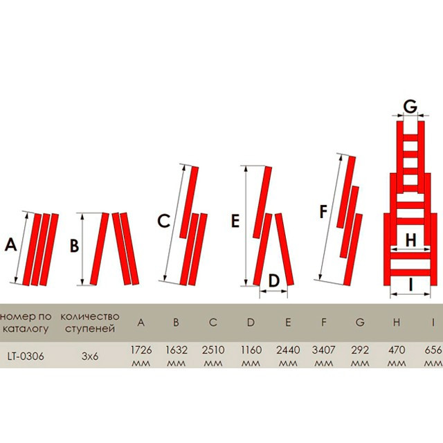 -0306ТМ< b>INTERTOOL, незамінна як у будівництві так і в побуті. Драбина LT-0306 виготовлені з високоякісного екструдованого алюмінієвого профілю, що відповідає європейському стандарту EN131. За ваги 9,3 кг витримує навантаження до 150 кг. Кожна з 3-х секцій оснащена 6 рифленими сходами завширшки 280 мм. Висота у розкладеному вигляді 3407 мм, у складеному – 1726 мм. Протиковзні опорні заглушки забезпечують надійне зчеплення з опорною поверхнею, перешкоджають ковзанню. Може застосовуватися як приставні, висувні Драбина і драбина. Атмосферостійкі стрічки запобігають мимовільному розсуванню боковин. Можливість використання як драбини та приставних сходів;
