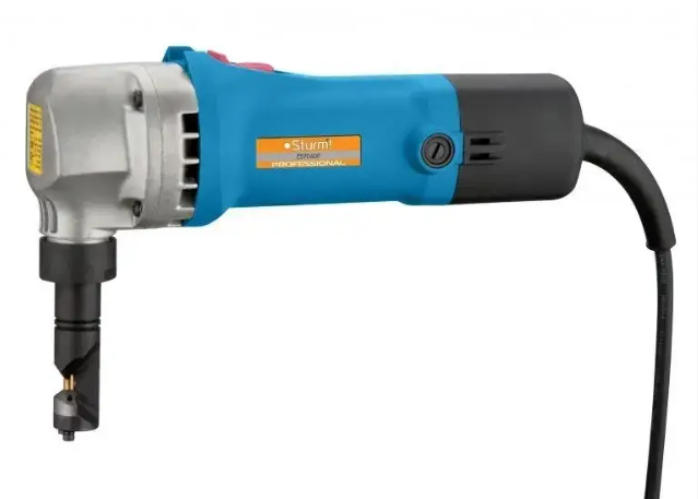 Sturmax ESM9060P - просічні ножиці по металу лінійки інструменту Sturmax Professional. Призначені для швидкого та точного різання листового металу. Добре підійдуть як для домашнього, так і професійного використання. Модель оснащена потужним електродвигуном 600 Вт і дозволяє з впевненістю впоратися з різними матеріалами: вуглецевою сталлю (до 1.6 мм), нержавіючою сталлю (до 1.2 мм), алюмінієм (до 2.5 мм). Для спрощення робочого процесу і підвищення точності операції, що просікують ножиці Sturmax ESM9060P мають вбудований вимірювач товщини металу. Інструмент має порівняно невеликі масогабаритні показники та продуману ергономіку, завдяки чому відмінно контролюється та надійний у хваті. Модель проста в обслуговуванні: легкий доступ до пуансона та матриці сприяє зручності їх заміни, а наявність функції швидкого доступу до щіток забезпечує можливість їх демонтажу без попереднього розбору елементів корпусу.