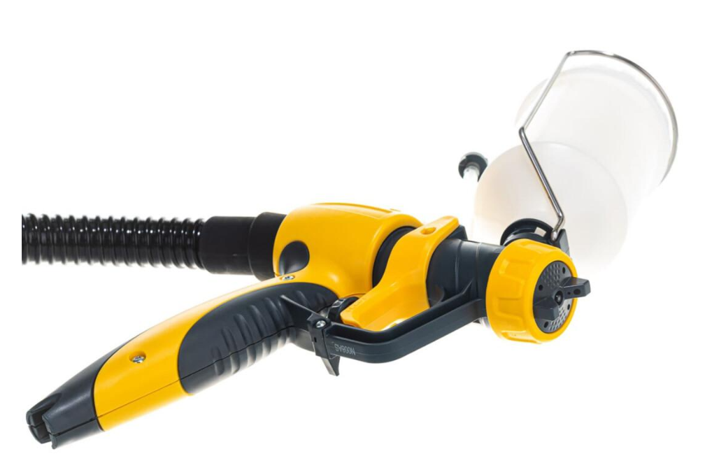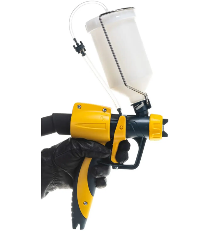 - Унікальна форсунка I-SPRAY надає можливість виконувати фарбування у горизонтальному та вертикальному положеннях, а також регулювати ширину струменя, забезпечуючи повний контроль над процесом нанесення фарби.