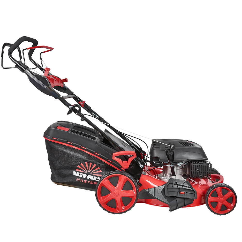 Газонокосарка бензинова Vitals Master Zp 51170td Grand - це газонокосарка напівпрофесійної серії торгової марки Vitals. Об'єм двигуна даної моделі — 170 см3, а потужність — 2,9 кВт. Необхідно відзначити простоту управління газонокосаркою. На ручці оператора знаходяться два важелі. Один із них (чорний) відповідає за роботу ріжучого ножа. Другий (червоний) включає привід на колеса. Якщо його натиснути, газонокосарка починає самостійно їхати вперед, а оператору необхідно лише спрямовувати її рух. Відмінною особливістю даної моделі є можливість керування швидкістю руху газонокосарки. Ніж в даній моделі виготовлений з гартованої сталі і має гострі лопаті, що дозволяє виробляти якісний скіс, при якому трава виглядає здоровою і має природний зелений колір. трави, або мульчування. Висота косіння регулюється центральним важелем, що дозволяє встановити 6 різних рівнів від 25 до 75 мм. Великі колеса, передні 8”, задні 11” дозволяють легко маневрувати та косити траву навіть на не дуже рівній поверхні. Для чищення металевої деки передбачена дуже цікава функція. За допомогою спеціального штуцера можна підключити поливальний шланг, потім, увімкнувши подачу води та саму газонокосарку, легко і просто відмити деку від залишків скошеної трави. Бензинові газонокосарки не прив'язані до електричного джерела живлення та дозволяють вільно маневрувати газонами з площею до 1000 м². Газонокосарка бензинова Vitals Master Zp 51170td Grand - подолає навіть найбільший газон!