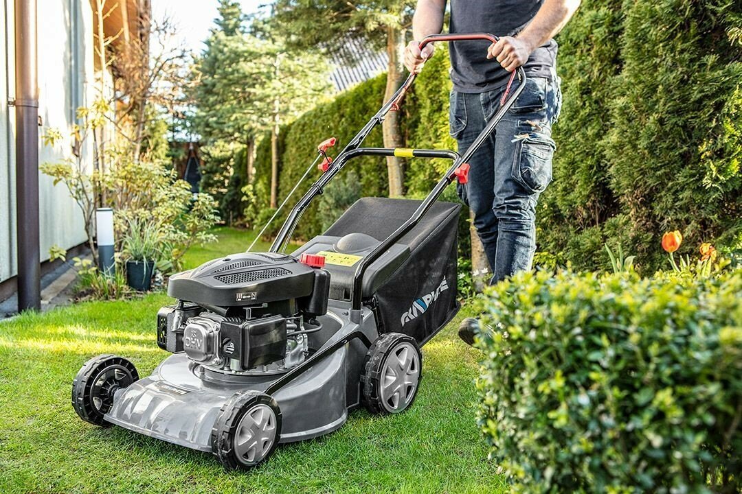 5-ступінчасте регулювання рівня скошування трави дозволяє підстригати газон на висоту від 25 до 65 мм залежно від потреб. Скошена трава збирається до травозбірника ємністю 45 л. Об'єм паливного бака 1.2 літра.