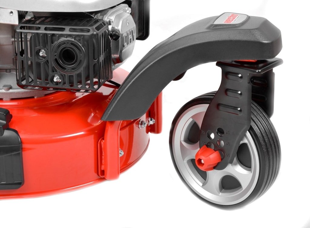 Комфортабельная центральная регулировка высоты - Высота кошения удобно регулююеться одним рычагом, который регулирует два задних колеса. Выбирайте из 6 различных высот кошения между 25-75 мм.