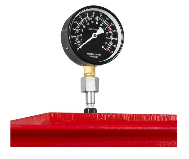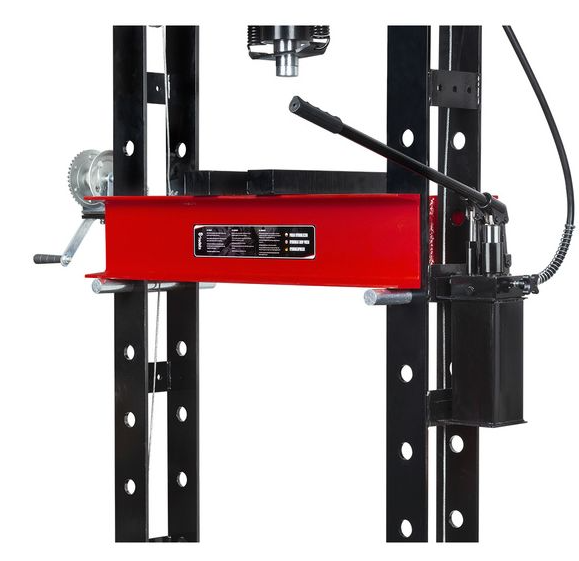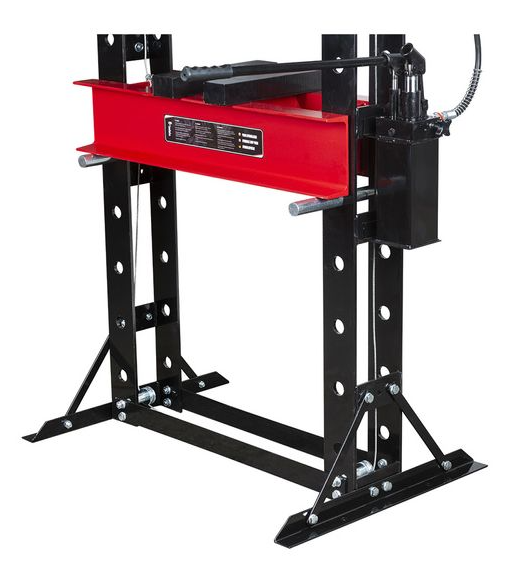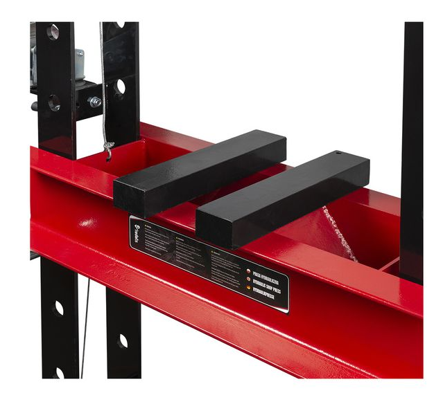 Хід штока становить 200 мм, діаметр штока – 46 мм. Для кращої стабільності заготівлі та обробки нестандартних форм є 2 призми розміром 355х70х50 мм. Для контролю сили тиску прес оснащений чітким манометром. Опорний стіл має ширину 695 мм та 8-ступінчасте регулювання висоти в діапазоні 100-1000 мм. Такі конструктивні особливості дозволяють легко адаптувати цей прес гідравлічний двонасосний під конкретне завдання.