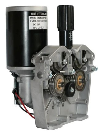 Характеристики товару Тип механізму подачі Тип механізму подачі SSJ-7 Двигун DC (постійний), 24В, 3.5А Потужність двигуна 80 Вт Кількість роликів 4 Діаметр зварювальної проволоки 0.8/1.0/1.2/1.0 мм Міжосьова відстань Ш х В) 230 x 200 x 225 Вес 3.5 кг. Швидкість подачі проволоки 2.5 - 24 мм/хв. Механізм подачі - частина установки для напівавтоматичного зварювання, що забезпечує подачу проволоки до зварювальної зони. Механізм монтується в корпус зварювального джерела або в окремий корпус. Основа механізму - електричний двигун постійного струму, який через редуктор рухає ролики. Рухаючись крізь ролики, дріт випрямляється та рихтується. Притискний ролик змонтований на підпружиненій відкидній рамці яка створює зусилля, потрібне для виправлення проволоки. Складові механізму зібрані на міцному литому корпусі. для кріплення на корпусі пристрою передбачені отвори. Як джерело живлення використовується зварювальний апарат або трансформатор. SSJ-7 - це механізм подачі штовхаючого типу, обладнаний двома роликами: два для притискання та два для подачі. Під час монтажу враховуйте габарити пристрою, а також міжосьове відстань для кріплення болтів (100 мм) та відстань між нижньою поліцею майданчика механізму та направляючою втулкою (95 мм). На SSJ-7 встановлюються ролики 37х19х12 з кріпленням під шпонку, в залежності від матеріалу проволоки, що використовується, підбирається тип канавки ролика: V-подібна канавка для сталей та U-подібна для м'яких матеріалів (алюміній та його сплави). Під час монтажу механізму зверніть увагу на величину зусилля притискання приводного ролика, якщо воно буде недостатнім, то дріт буде проковзувати, а при надмірному зусиллі - деформуватися і рухатися поривами. Обидва варіанти призводять до порушення процесу зварювання та появі дефектів зварного шва.