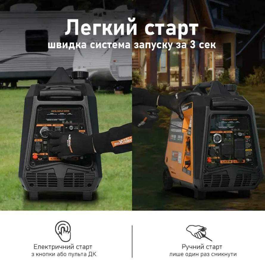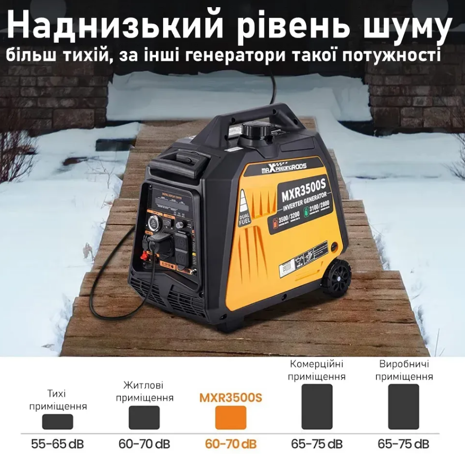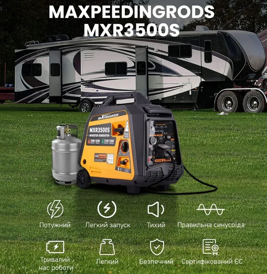 Інверторний генератор MaXpeedingRods MXR3500s має ключову перевагу – можливість роботи не тільки на бензині, а й газу. Потужний двигун видає в піку 3500 Вт і готовий постійно підтримувати навантаження в 3200 Вт. Об'єм паливного бака достатній для роботи на бензині протягом 11 години при мінімальному навантаженні. Використовуючи газ як паливо, як заявляє виробник, можна збільшити до 1000 годин безперервної роботи. Все залежить від обсягу балону з пропан-бутаном.