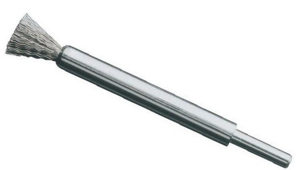Щітка кінцева Lessmann 458361, D12х20х120 мм, хвостовик 6 мм, нержавіючий гофрований провід 0,3 мм, 20000 об/хв Характеристики: Розмір: D12х20х120 мм Хвостовик 6 мм Нержавіючий гофрований провід 0,3 мм 20000 об/хв Країна-виробник: Німеччина Кінцеві щітки з хвостовиком залишків гуми в особливо важкодоступних місцях, а також при очищенні форм та лиття. Ефективні при обробці кромок, заокруглень та заглиблень усередині отворів.