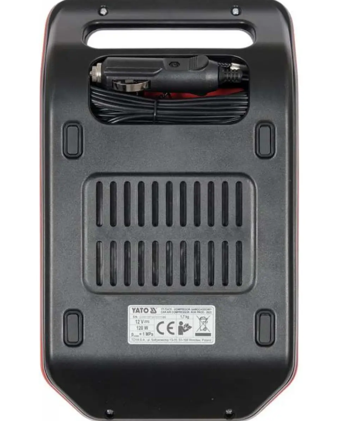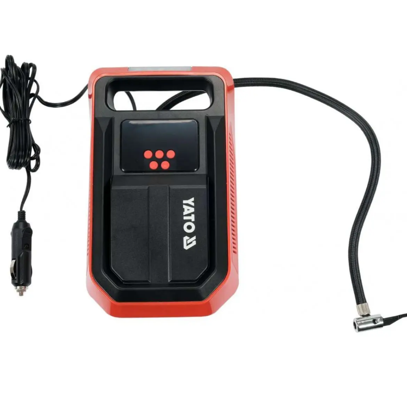 Автомобільний компресор YATO YT-73470 з електронним дисплеєм та світлодіодними лампами призначений для накачування коліс та камер автомобілів, велосипедів, мотоциклів, матраців, понтонів та м'ячів. Завдяки можливості отримувати харчування безпосередньо від прикурювача, користувач може працювати з більшою ефективністю. Вбудовані світлодіоди дозволяють виконувати дії навіть у темряві. Транспортувальна ручка робить перенесення пристрою зручним і легким.