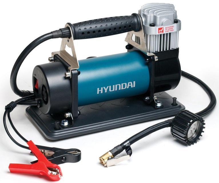 Електричний компресор Hyundai HY 90E високопродуктивний інструмент. Двигун захищений від перегріву. Манометр дає можливість контролювати тиск. Час накачування шини розміром R15/195/60 до 2,3 атм становить приблизно 0,5 хвилини. Для зручного транспортування передбачена ручка.