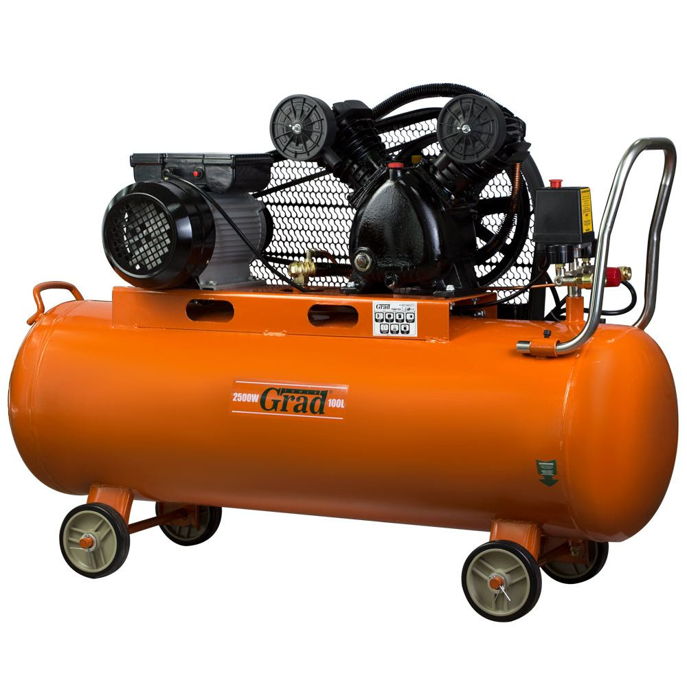 Компресор ремінний V 2.5кВт 378л/хв 8бар 100л (2 крана) GRAD (7044185) - сучасний пристрій для нагнітання повітря під тиском. Модель обладнана фільтром вхідного повітря для захисту внутрішніх вузлів від пилу та бруду. Редуктор допомагає виставити оптимальний тиск для ефективної роботи пневмоінструменту. Запобіжний клапан спрацьовує у разі підвищення граничного тиску, дозволяючи захистити деталі пневмосистеми від аварійних поломок. У нижній частині ресивера є спеціальна дренажна пробка, яка дозволяє легко і швидко зливати конденсат. Конструкція передбачає колеса, завдяки яким компресор легко і зручно транспортувати по робочому майданчику. font-size: 11pt;">Встановлені зворотний та запобіжний клапани;