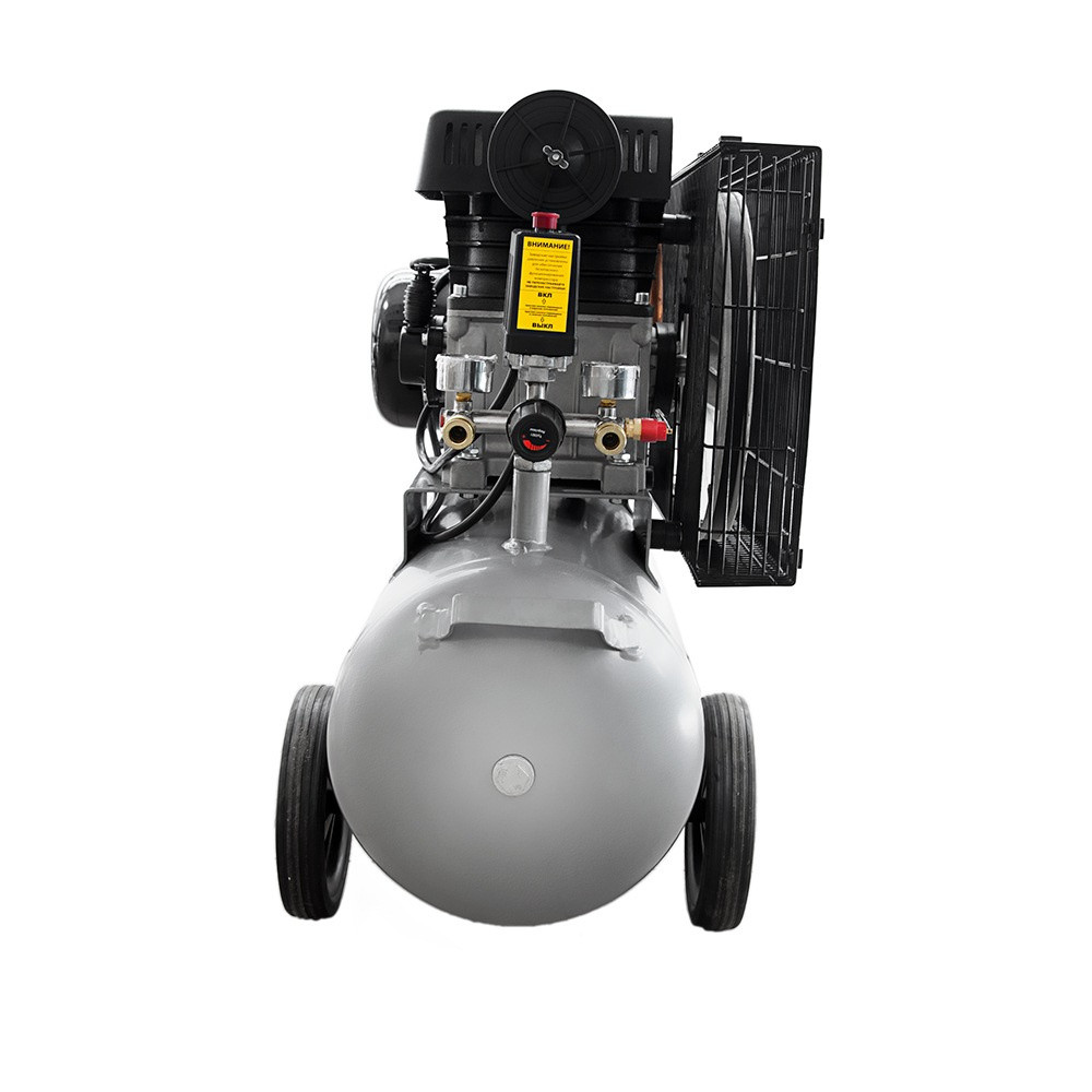 Компресор двоциліндровий ремінний 2.5кВт 335л/хв 10бар 50л (2 крана) SIGMA ( 7044121) призначений для нагнітання стисненого повітря з подальшою його подачею під тиском у різні типи пневмоінструменту та пневмообладнання. Ремінний привод компрессора закритий металевим кожухом, який запобігає попаданню сторонніх предметів. Опорна ніжка забезпечує стійке положення на поверхні, а гумова подушечка знижує рівень вібрації. Модель компрессора Sigma 7044121 має потужність 2.5 кВт і велику продуктивність 335 л/хв з високим тиском ( до 10 бар). Ця модель спроектована для професійного застосування. Застосовується в будівництві та невеликому виробництві, на СТО та майстернях. Ресивер ємністю 50 л дозволяє накопичувати більший об'єм стисненого повітря, що значно зменшує частоту вмикання двигуна, знижуючи навантаження на компрессор і, відповідно, збільшує термін його служби.