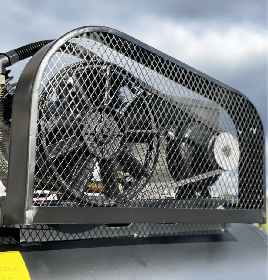 Пристрій оснащений тепловим захистом двигуна, щоб уникнути перевантажень і автоматично вимикається при досягненні максимального тиску. Простота обслуговування та використання міцних підшипників на колінчастому валу зменшують ризик несподіваних збоїв.